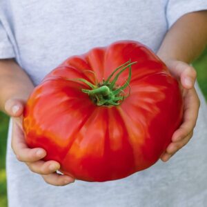 A piros, húsos, fényes bogyók a rekordméretű kategóriába tartoznak: megfelelő gondozás mellett súlyuk akár az 1 kg-ot is elérheti! A vegetációs periódus körülbelül 75–80 napot vesz igénybe. A magok csávázatlanul kerülnek forgalomba, így tiszta alapot biztosítanak a vegyszermentes termesztéshez. Ahhoz, hogy valóban óriási paradicsomokat nevelj, korlátoznod kell a növényen lévő gyümölcsök számát.